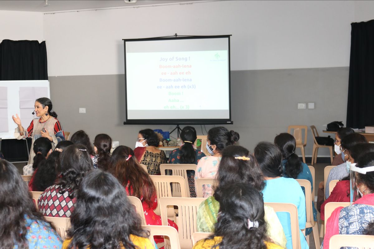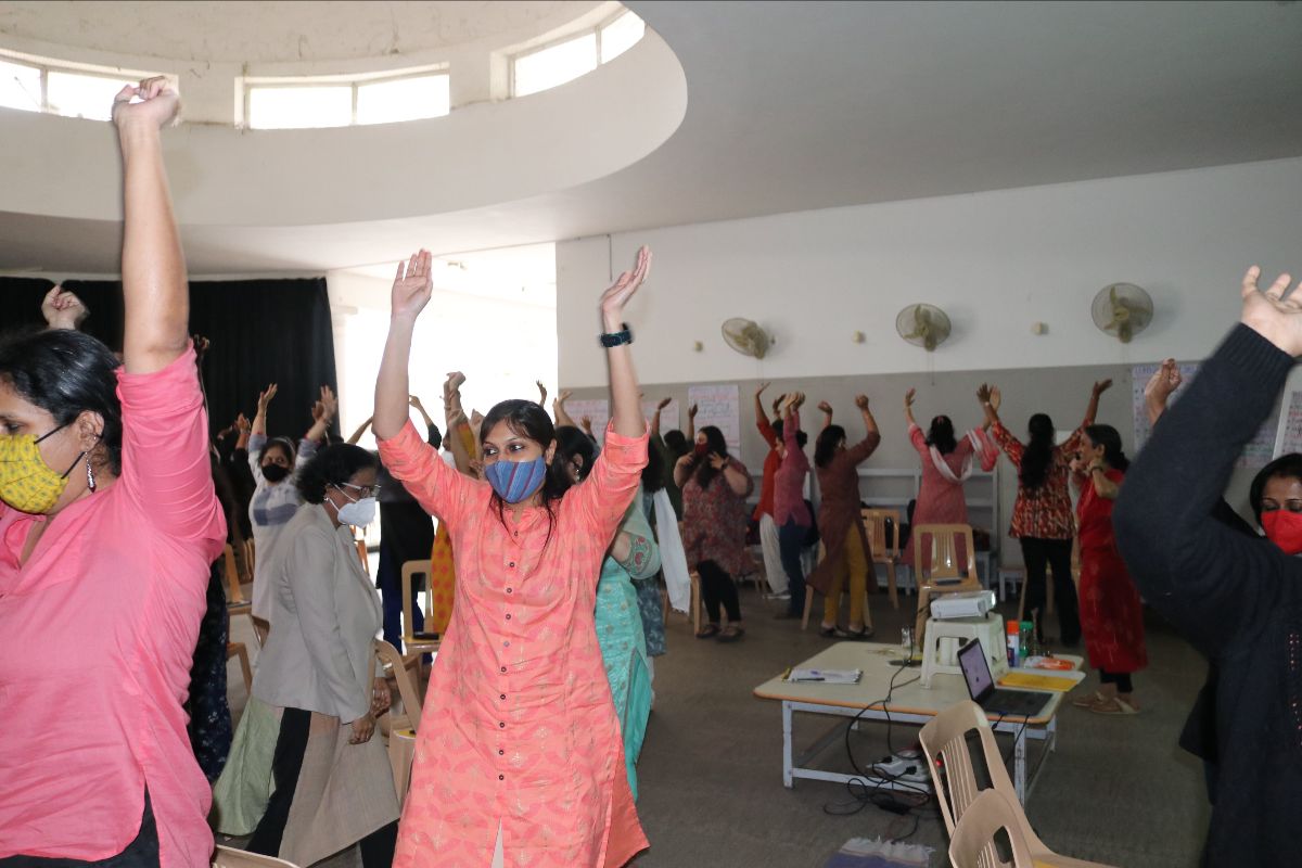 Over 55 teachers from VidyaShilp group of schools participated in a 2 day workshop on Jenny Mosley's Whole School Quality Circle Time (QCT) on 7th and 8th October, 2021. QCT helps foster Social & Emotional Learning and Well-being in children and teachers alike with a focus on self esteem, collaboration, mutual trust, respect and empathy.